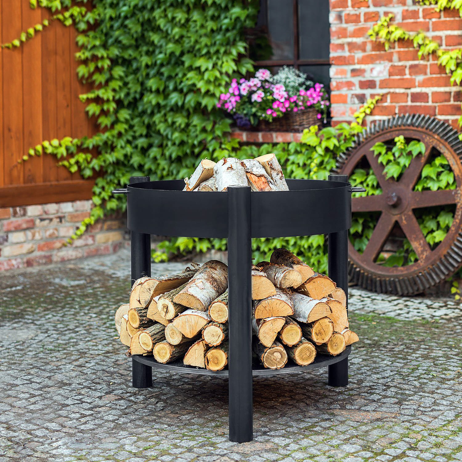 Die in Handarbeit sorgfältig verschweißte Design-Feuerschale mit einem Durchmesser von 60 cm und einer Höhe von 80 cm ist dank einer Materialstärke von 2 mm besonders widerstandsfähig und langlebig. Sie bietet nicht nur ausreichend Platz für mehrere Holzscheite - eine extra Holzablage, ermöglicht das vorzeitige Trocknen von feuchtem Holz und das problemlose Nachlegen von Holzscheiten in die Feuerstelle. Die stabilen Beine der Schale garantieren darüber hinaus eine zuverlässige Standsicherheit Und zwei Griffe an den Seiten ermöglichen es zudem, die Feuerschale flexibel zu platzieren. Auch optisch stellt die im modernen minimalistischen Design gestaltete Feuerschale Montana High mit der typischen, natürlich entstehenden Rostpatina einen echten Hingucker dar.