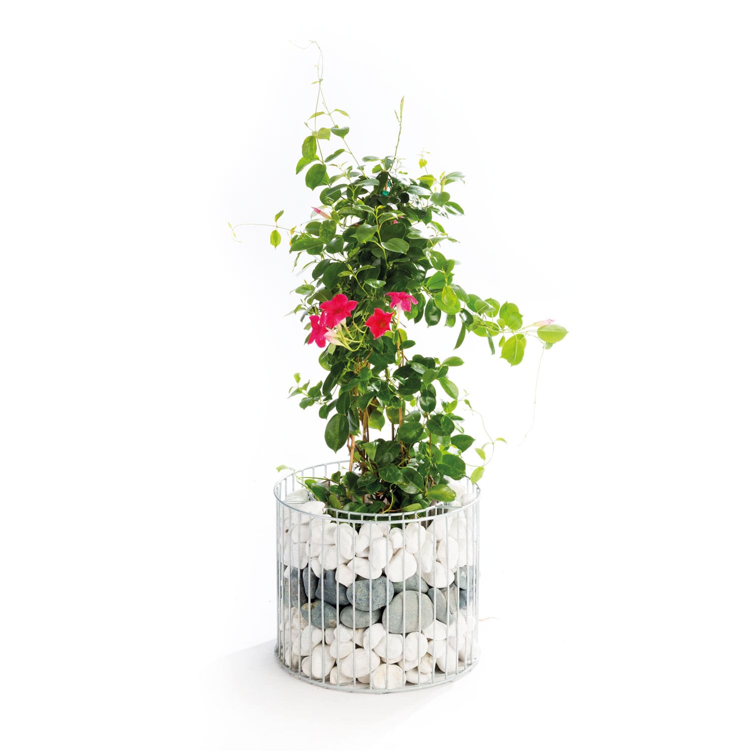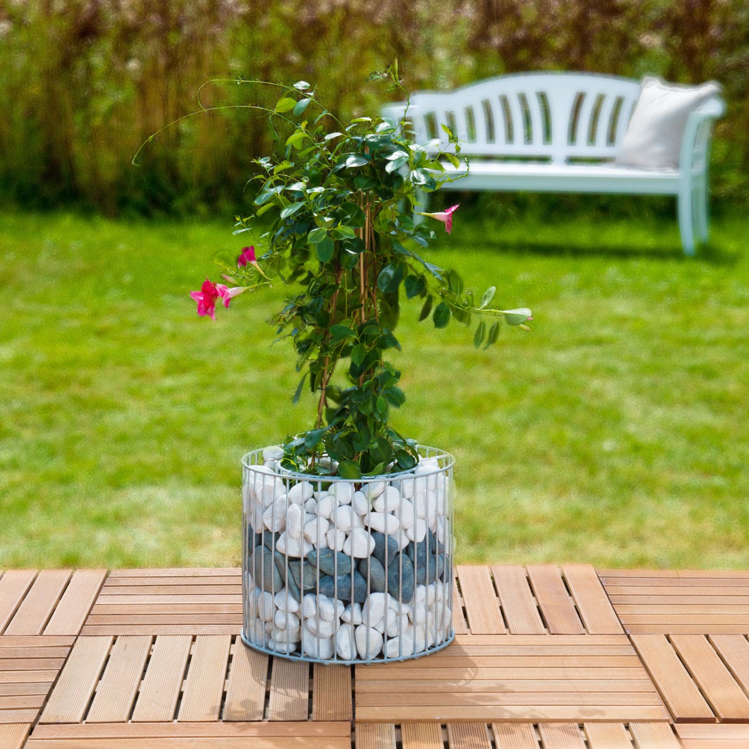 Der ca. 39 cm hohe und im Durchmesser 49 cm messende Gabionen-Pflanztopf aus 100 % feuerverzinktem Stahl ist einfach zu befüllen, da er über einen inneren Korb verfügt, der mit einem schwarzen Kunststoff-Einsatzpflanztopf ausgestattet ist.