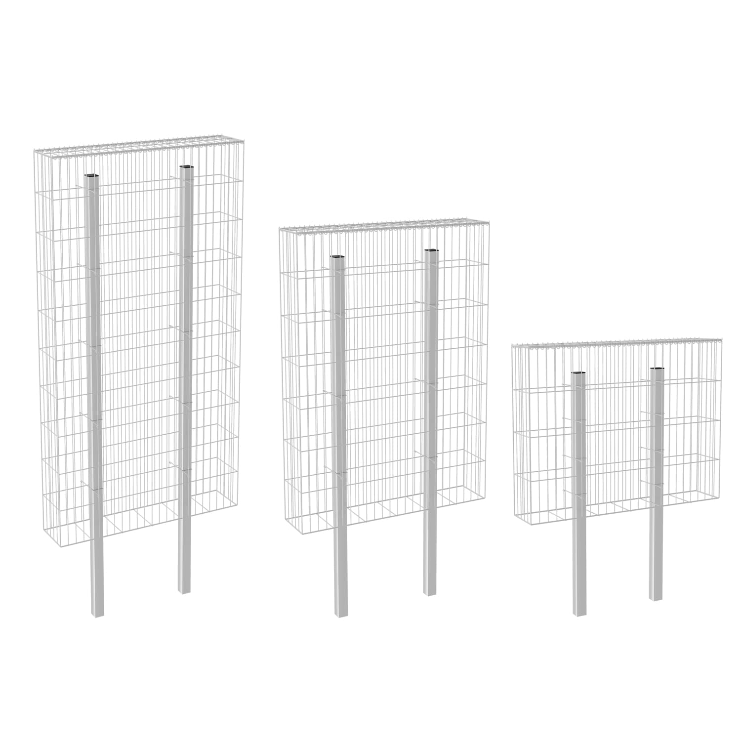 Die hochwertigen fertig montierten Drahtkörbe aus feuerverzinktem, 5 mm starkem Rundstahl sind ideal geeignet, eigene individuelle Gestaltungsideen im Garten zu verwirklichen. Je nach Bedarf können die Komplettsets in verschiedenen Abmessungen gewählt werden. Die Gabionenzäune in den Breiten 120 cm und 200 cm verfügen über zwei Pfosten. Diese sind innenliegend, so dass bei den befüllten Gabionenzäunen die Befestigungen nicht zu sehen sind.