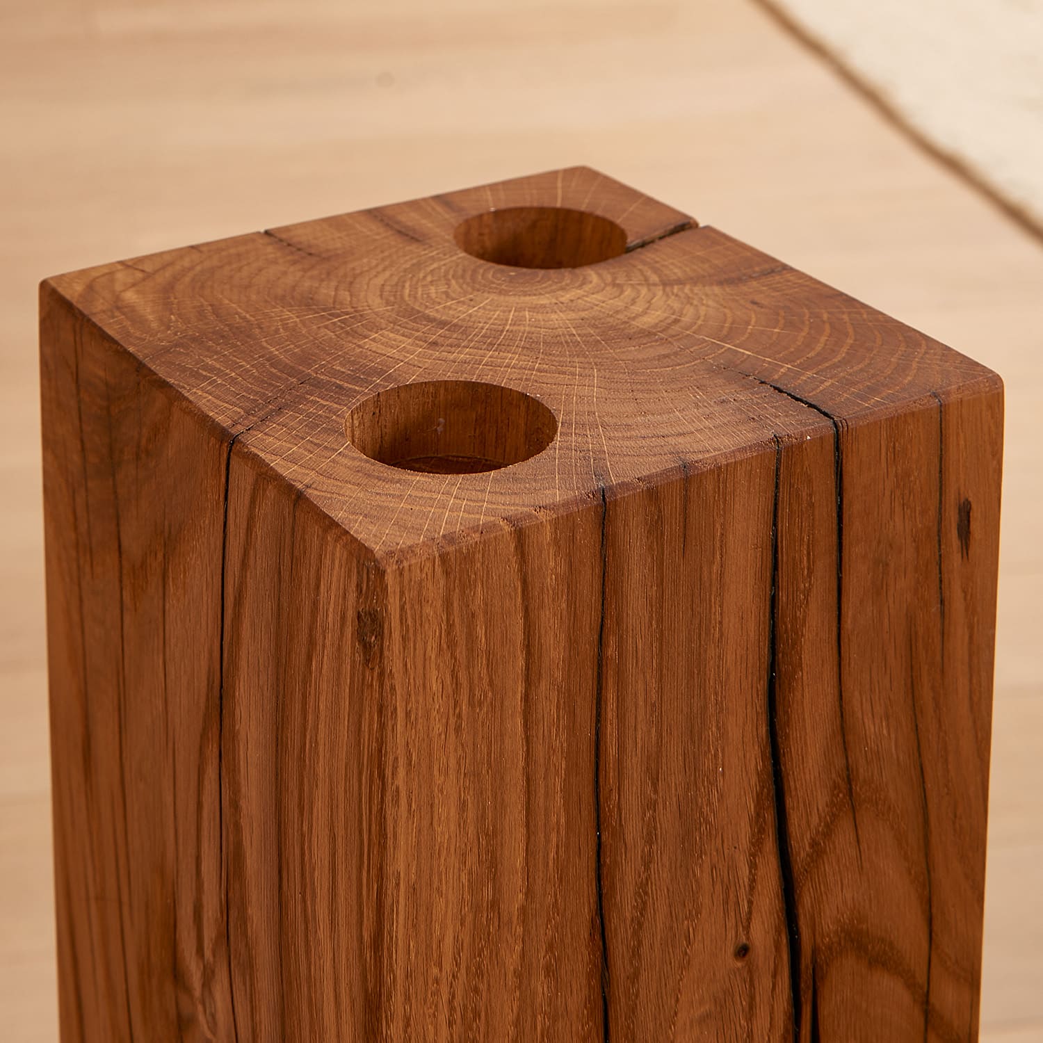 Stimmungsvoller Kerzenleuchter aus hochwertigem Eichenholz.