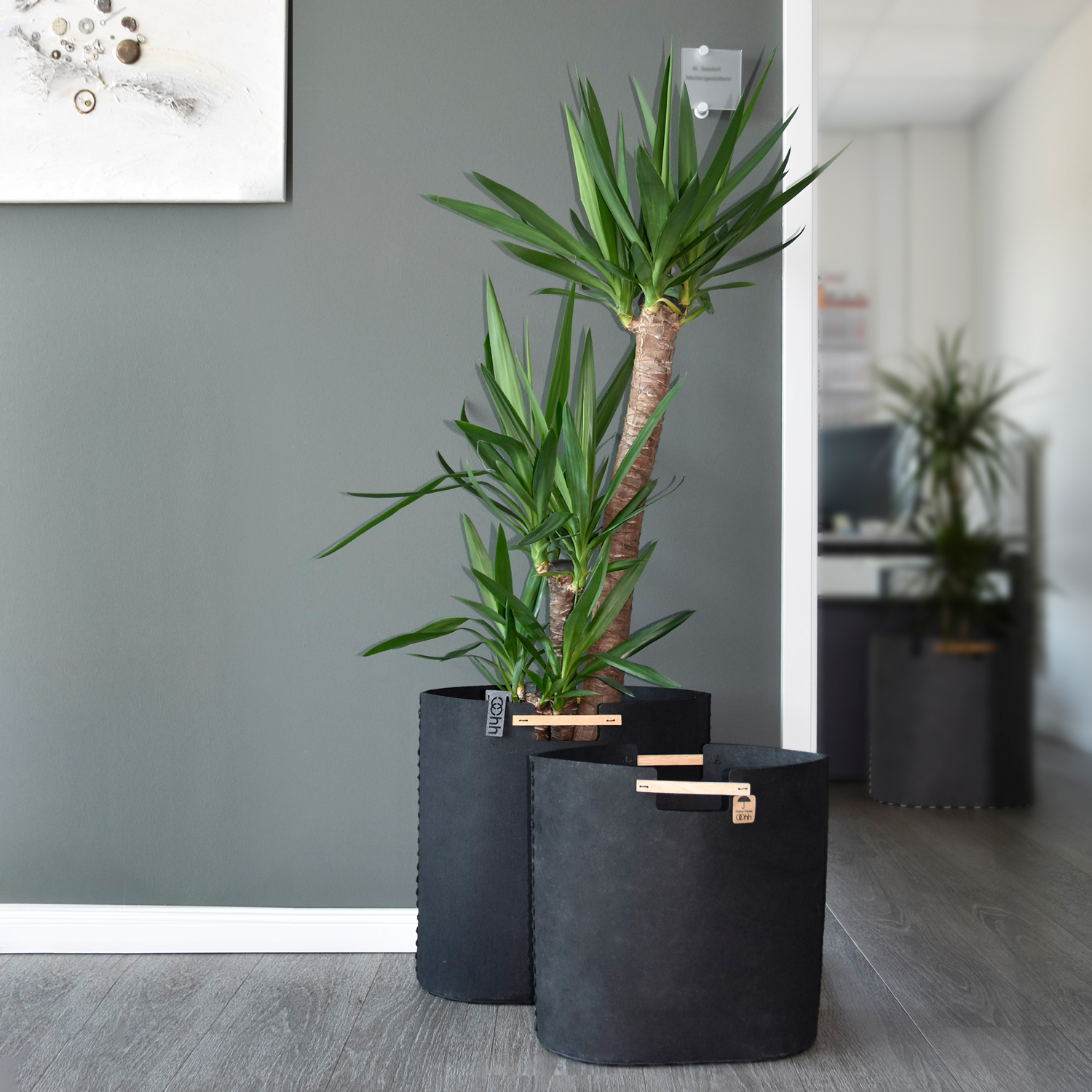 Nachhaltige Übertöpfe aus Öko-Filz.