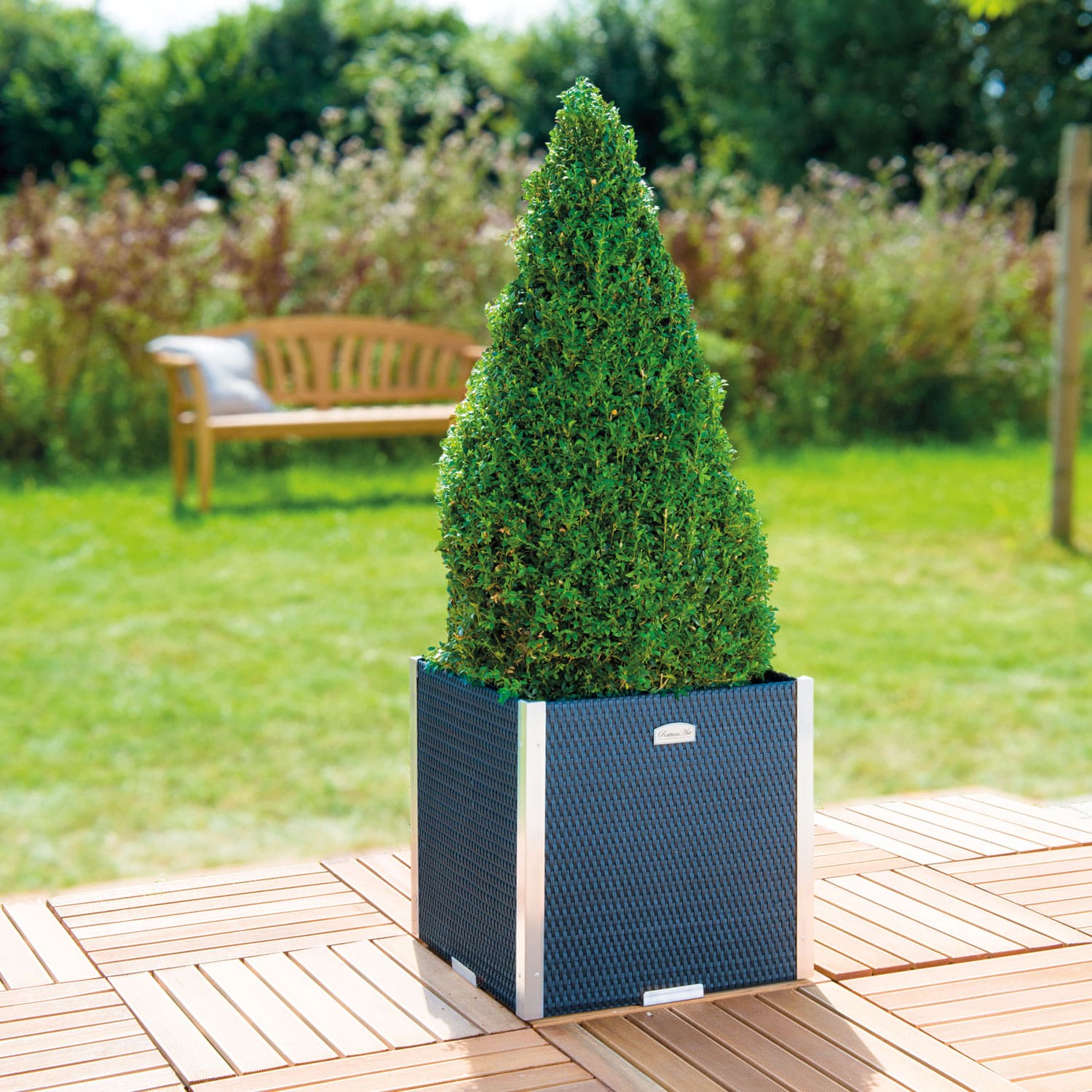 - 1 x Rattan-Pflanzkübel mit Alubeschlägen Anthrazit 46 x 46 x 46 cm
