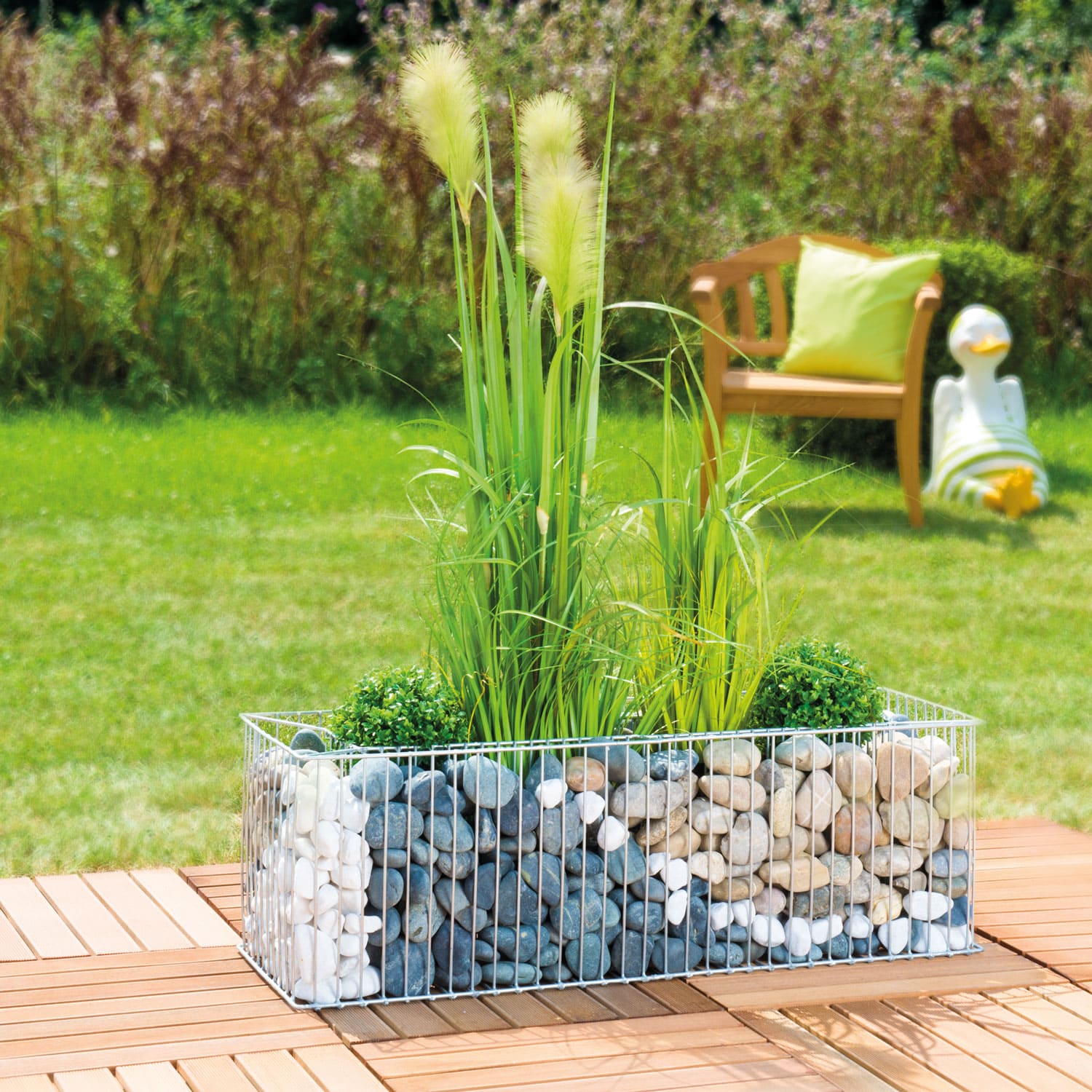 Das Geheimnis eines schönen Gartens, einer einladenden Terrasse oder eines gemütlichen Balkons liegt in der passenden Bepflanzung. Während Bäume, Hecken, Sträucher und üppige Beete den großen Gartenraum strukturieren, bereichern Pflanzkübel und Blumentöpfe mit ihren zahlreichen Vorteilen Gartenecken, Terrassen, Balkone und Eingangsbereiche. Das passende Pflanzgefäß bringt dabei Blumen, Sträucher und Gräser erst so richtig zur Geltung. Insbesondere Gabionen-Pflanzkübel bieten hierfür unbegrenzte kreative Möglichkeiten, da sie mit verschiedenen Materialien wie Steinen oder Glas befüllt werden können und so bereits selbst einen dekorativen Blickfang darstellen. Durch die ideale Kombination von Gabionenform, Füllmaterial und Bepflanzung erschaffen Sie ein einzigartiges Dekorationselement für Ihren Garten. Aber auch im Innenbereich, so z. B. im Treppenaufgang oder in der großzügigen Diele eignen sich die stilvollen Drahtkörbe hervorragend zur dekorativen Gestaltung. Darüber hinaus ermöglichen es Pflanzkübel, den Standort der Pflanzen ganz nach eigenem Belieben zu variieren. Ob eckige oder runde Gabione, ob dekorative Steine, Holz, Zapfen oder Glas, ob eine Bepflanzung mit Gräsern, Bäumchen, Sträuchern oder Palmengewächse – Ihrer Phantasie sind keine Grenzen gesetzt. Die formschönen Gabionen-Pflanzgefäße, die aus feuerverzinktem 5-mm-Rundstahl handverschweißt werden, überzeugen durch eine professionelle Verarbeitung und ihr hochwertiges Material.